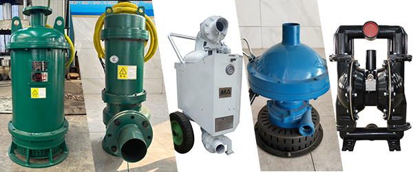 公司主要產品有礦用隔爆型潛水排沙泵、潛污水電泵及風動潛水泵、氣動隔膜泵、氣動清淤泵三大類10個系列200余個型號規格。